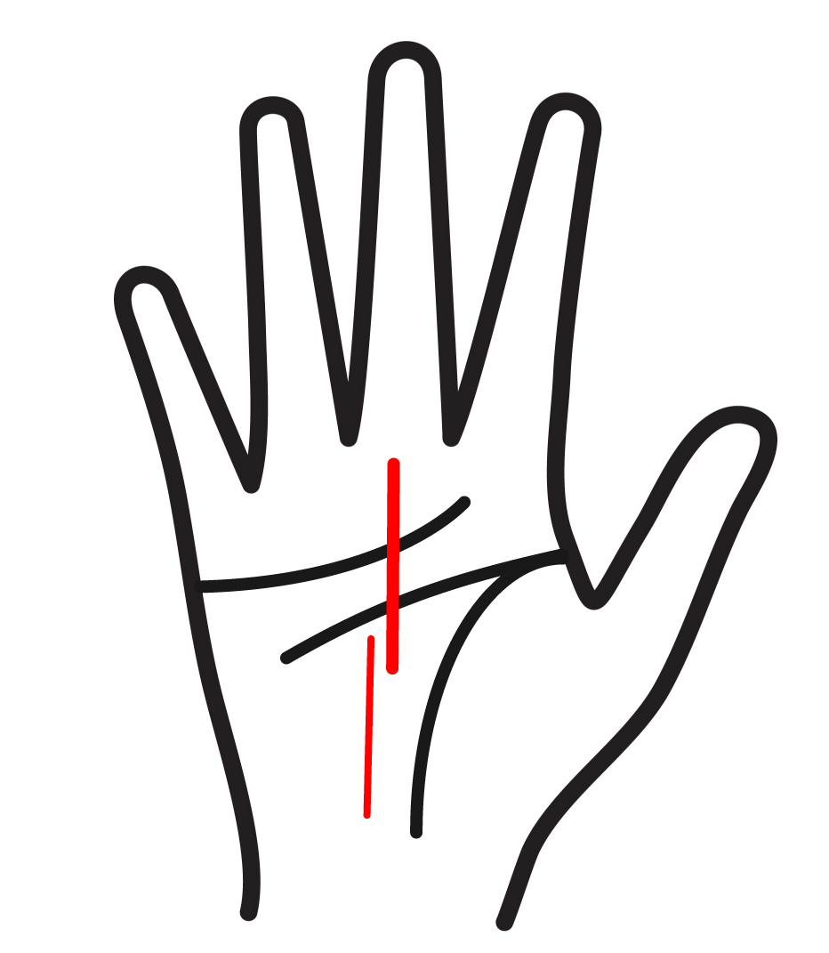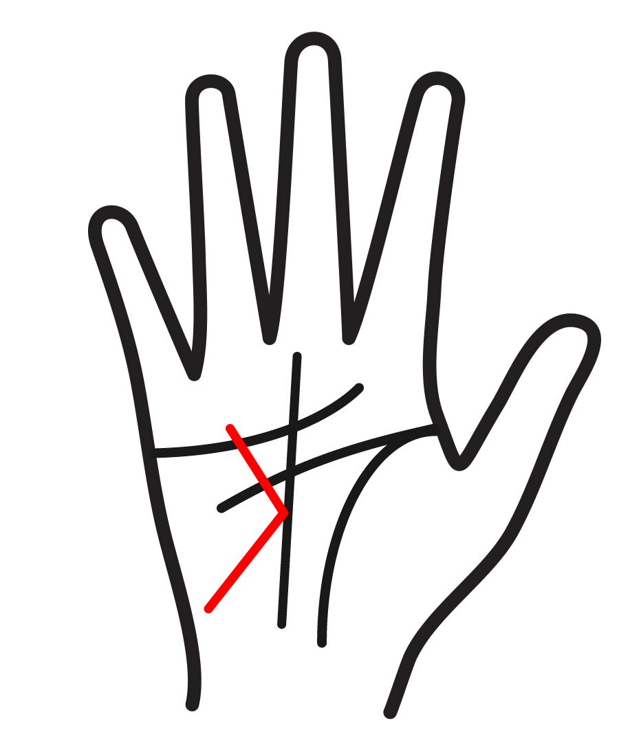 장지를 향해 뻗어있는 운명선은 강한 운기를 나타냅니다. 그 운명선이 또 한 번 바뀌어 향하는 경우 환경의 변화, 여성의 경우 결혼을 나타내는 경우가 많습니다. 오른손의 운명선이 더 강하고 확고한 선인 경우 결혼 후에 더욱 행운과 발전된 모습을 보여줍니다.