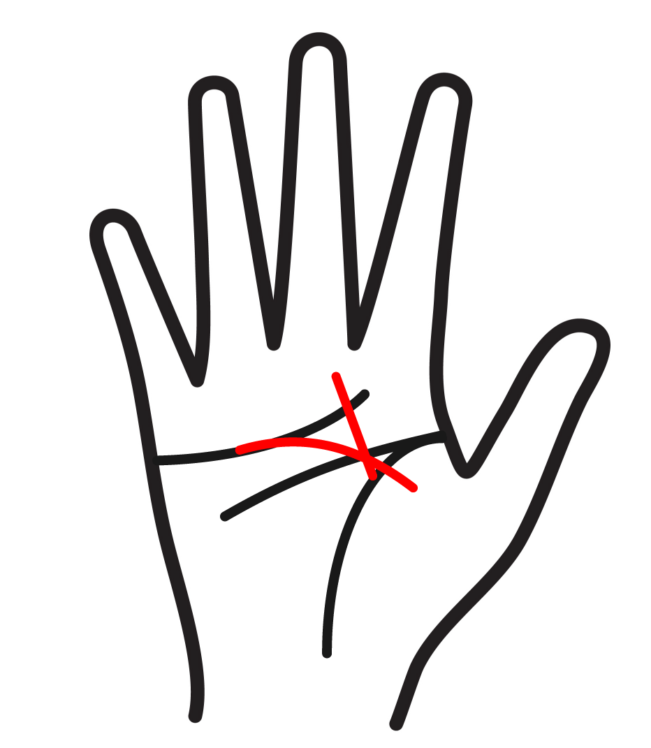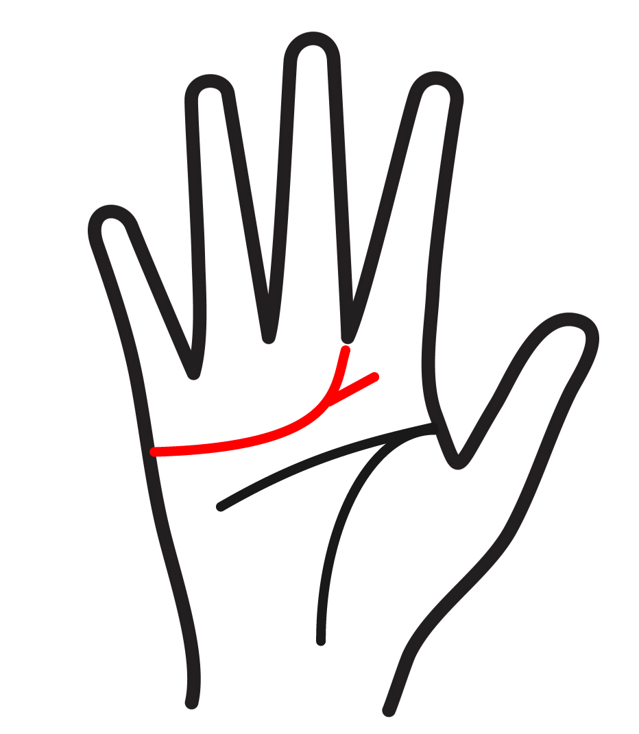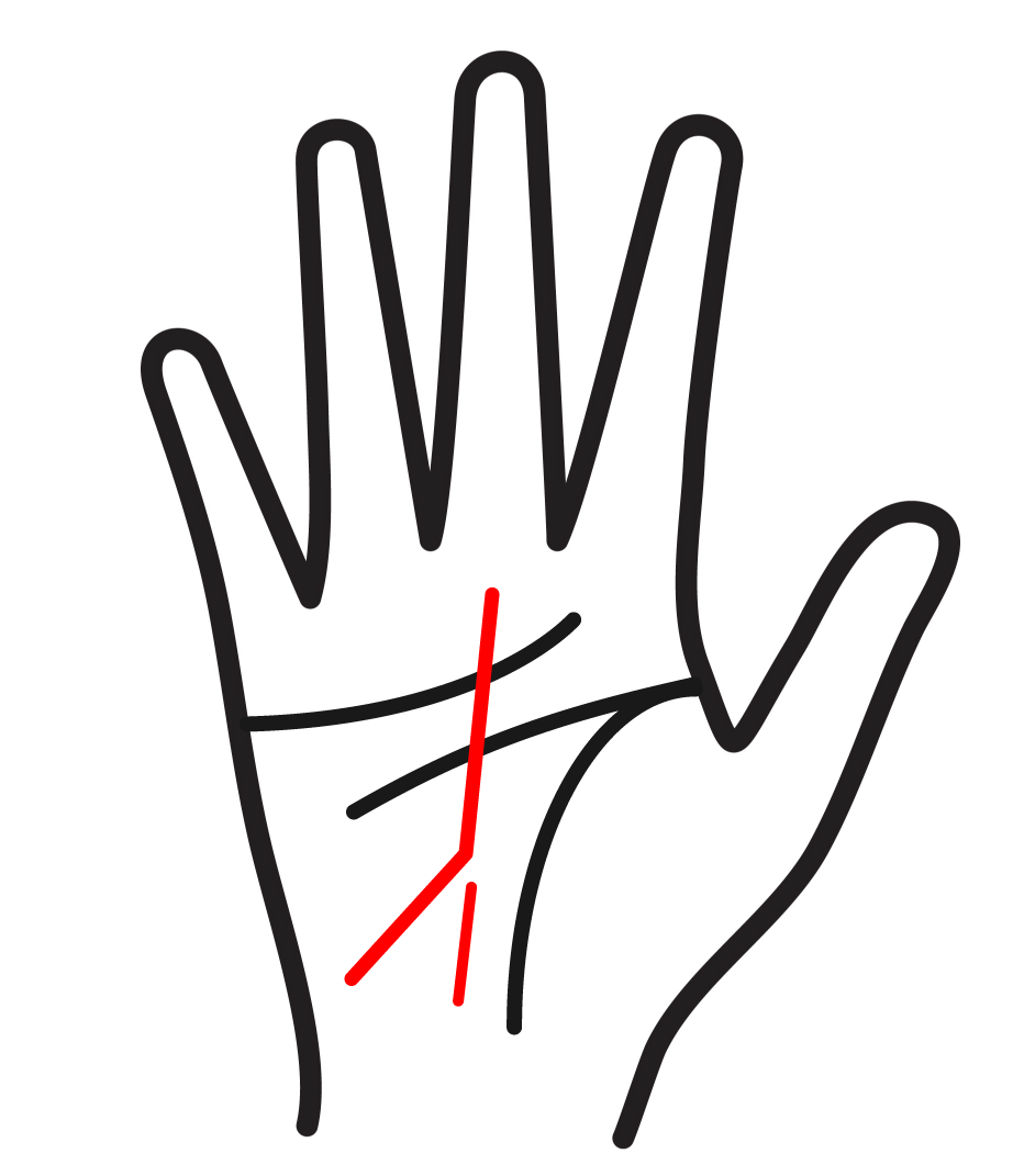 지능선에서 생긴 확고한 지선으로 감정선과 연결되어 있는 경우 그리워하며 매우 사랑하는 상대와 만날 수 있는 행운의 소유자입니다. 결혼 전보다 결혼 후 더 생활이 풍요로워지고, 행복한 아우라가 만개하는 유형입니다.